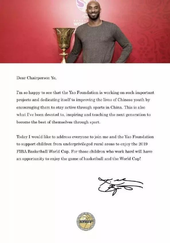 此前世界頂級球星科比通過視頻和書信表達了對于圓夢之旅公益計劃的支持和祝福:“希望這些孩子們通過參加2019年國際籃聯籃球世界杯,體驗頂級籃球盛宴,親見夢中偶像,來激發“盡力拼,就是贏”的不氣餒精神!”