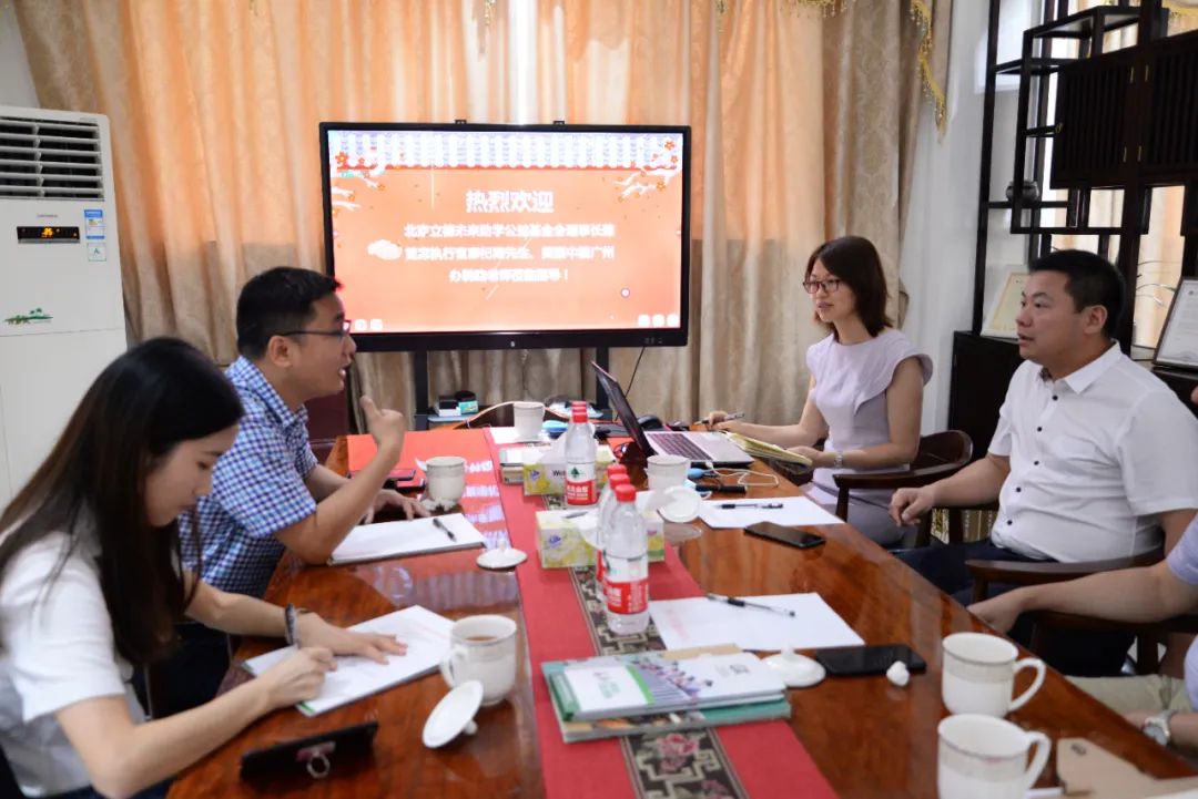 5月25日上午,廣州市區暴雨,這也沒有阻擋北京立德未來助學公益基金會理事長兼首席執行官廖杞南、美麗中國廣州辦老師韓路對廣州高新教育集團考察的熱情。