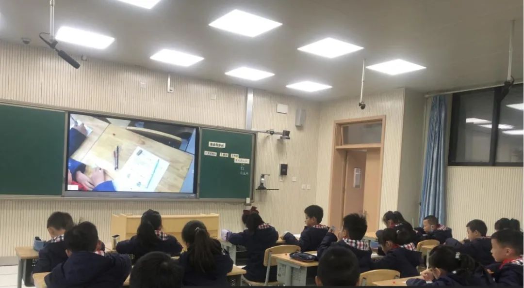 ▲ 利用現代教學技術,投屏展示孩子們的學習成果。
