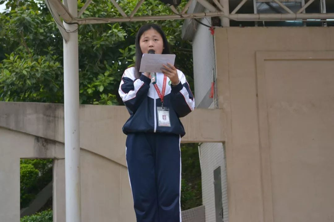接著是大會第二項,背誦系訓以及系部口號,上周說明因為口號中的“愛家愛校愛父母”中“愛家”和“愛父母”重復,所以改成了“愛家”改成了“愛國”。