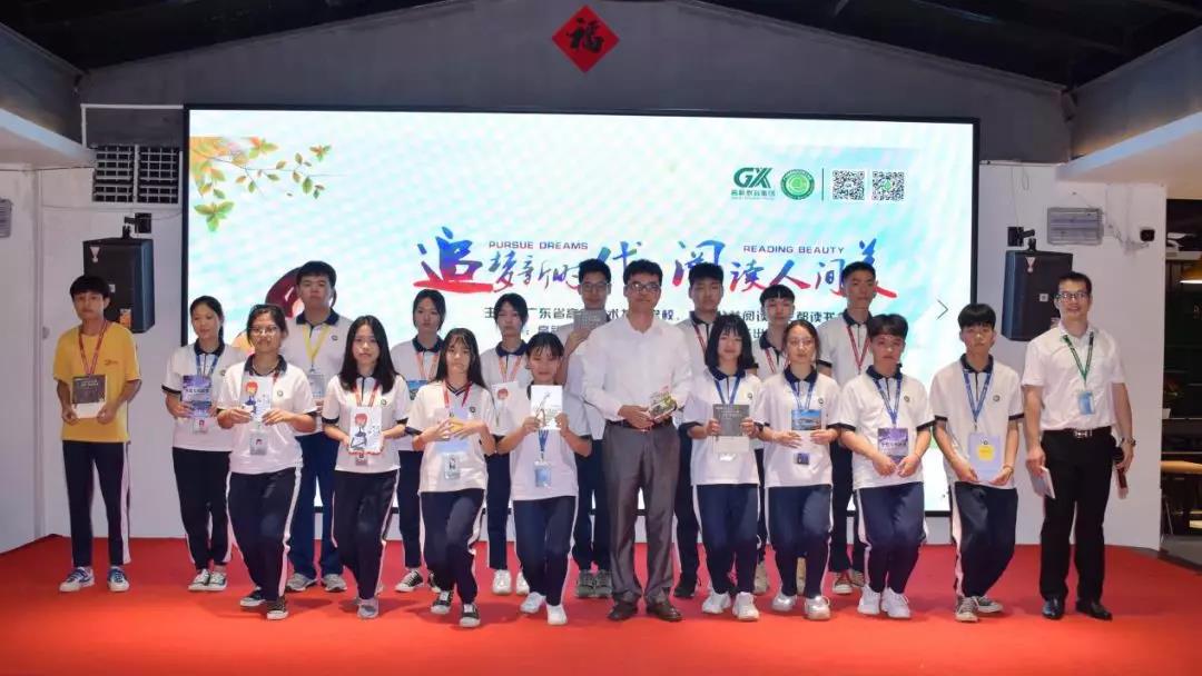 廣州市作家協會副主席、書香羊城全民閱讀推廣大使黃金來,花都讀書會書友到場見證,花都讀書會發起人、花都朗誦協會副會長江永強和廣東省高新技術技工學校文建友副校長、梅啟亨副校長、校長助理王磊等50位中高層教職工列席,一同參與學習的還有高新技校300名師生。