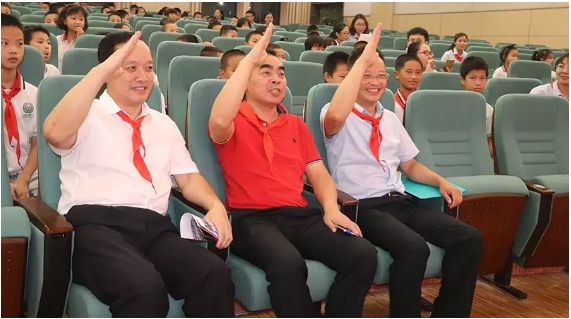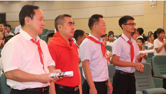在大隊長朱庭萱的帶領下,全體少先隊員在隊旗下光榮宣誓和呼號:時刻準備著,為共產主義事業,貢獻一切力量!他們表示決心聽從黨的教導,熱愛祖國,熱愛人民,好好學習,好好鍛煉,努力成為社會主義建設需要的合格人才,做共產主義事業接班人。