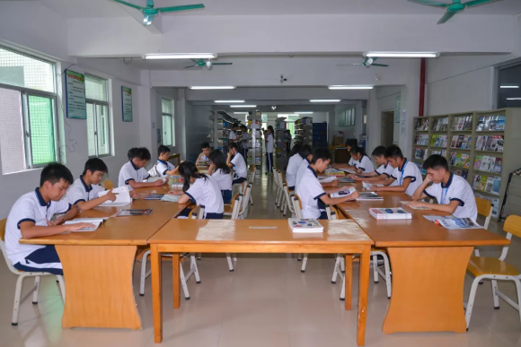 高新圖書館自學校開辦伊始創辦,至今已有12個年頭。最初,圖書館建立在中堅樓,面積和一間教室差不多大。到了2013年,圖書館最終落腳天培樓二樓。圖書館現藏書量5萬多冊,共有18個類別:經濟、語言、文學、工業技術、歷史、藝術、軍事等,每一年都訂閱有各類著名雜志、報紙書刊等達7萬多本,如:芭莎珠寶、意林、情感讀者、青年文摘、人像攝影、鋼琴藝術、銷售市場、制冷與空調等。