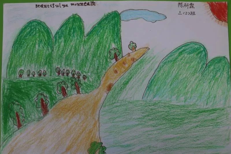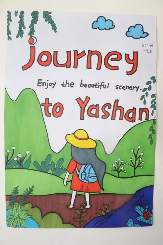 同樣的,為了準(zhǔn)備研學(xué)課程,孩子們還用英語認(rèn)真的做了丫山海報。讓我們來看看大余衡實三年級孩子們的作品吧!