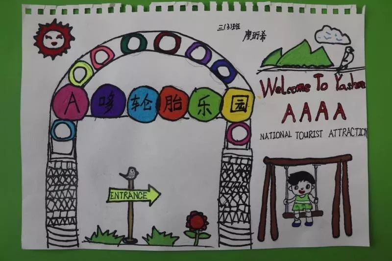 孩子們做了許多和丫山有關(guān)的海報,關(guān)于丫山他們也有很多話要說。他們用簡單的英語在海報上表達(dá)了他們關(guān)于丫山的感受。