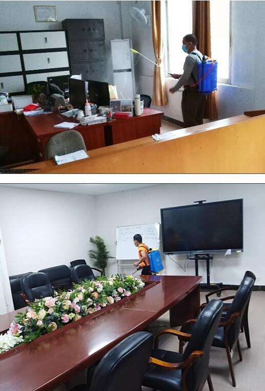 清潔消毒工作每天早上8點開始,對目前有人員出入和逗留的場所會每天消毒一次,如校門值班室、總務處、已返校教職工宿舍。已返校人員每天接受三次體溫檢測。校門崗將嚴格執行到訪人員信息登記、車輛檢查、體溫檢測。