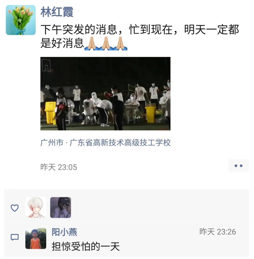 在上級部門的關懷和支持下,10月16日下午,廣東省高新技術高級技工學校進行了全員篩查,次日清晨公布了結果:高新技校內的全體師生、家屬、工勤人員等7383人,全部為 核酸檢測陰性!