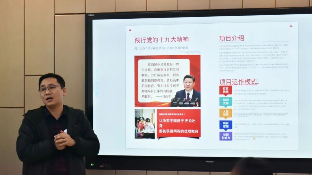 廖杞南理事長從招募選拔、培訓支持、入校安置、項目管理、長期影響力等方面介紹項目的運作模式,從線下培訓交流活動、線上培訓資源庫交流平臺、個性化發展資源分別介紹項目老師們的培訓,從三個維度、五個階段、五種方式講解項目老師的發展藍圖,結合項目影響力、課堂影響力、社區影響力、往屆校友去向以及合作伙伴等層面的概述使我校領導們更加了解美麗中國項目的培養模式。美麗中國將全國各地優秀人才匯聚到最艱難的地方,向大眾昭示著這樣的培訓對于非師范專業老師也是一條道路,同時也深刻感受到這所“另類”師范的獨特魅力。