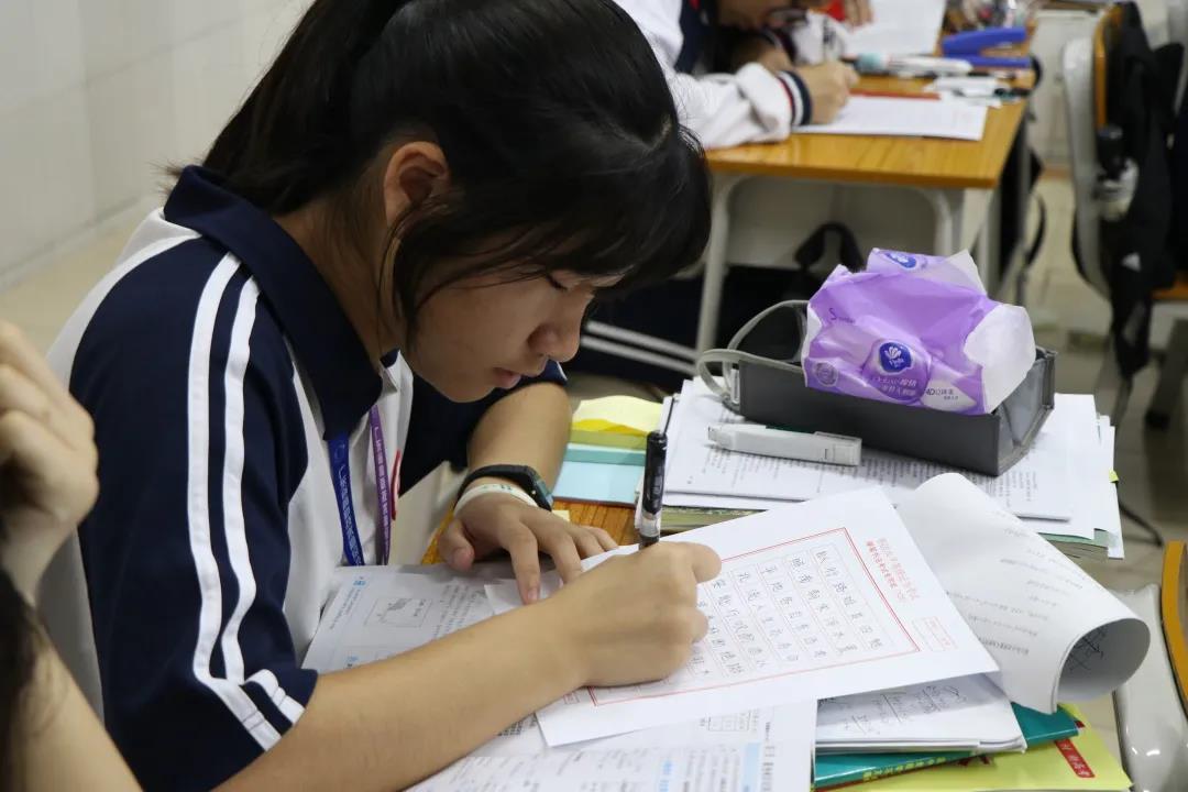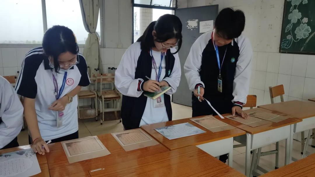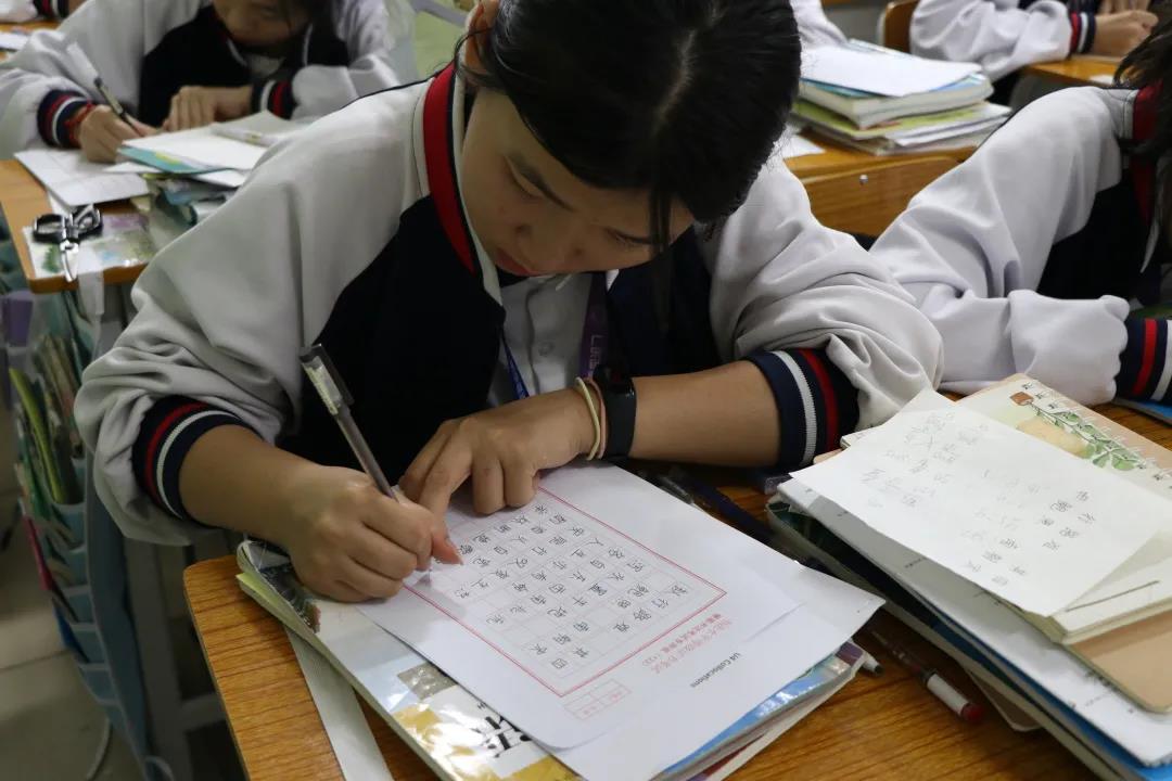 本次初賽除了語文課組老師作為評委外,還特邀了上一屆獲硬筆書法比賽第一名的韋家麗(2班)、張寶兒(4班)、牟星宇(2班)、何子嫻(3班)、于珊珊(2班)、劉語晴(4班)、王思淇(3班)、楊欣冉(3班)等8位學生作為小評委。初賽以班級為單位進行,每位同學都有資格參賽,賽后經評委選出入圍選手參與決賽。