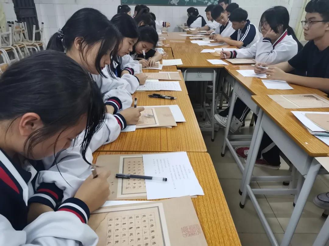 在初賽環節,班級是練場,也是賽場。同學們在接到比賽通知后,認真練字,摩拳擦掌。